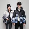 دافئ الأزهار طباعة سترات قطنية امرأة فضفاضة الوقوف طوق المرقعة سترة الخريف أنيقة الإناث ملابس خارجية شيك معاطف سميكة
