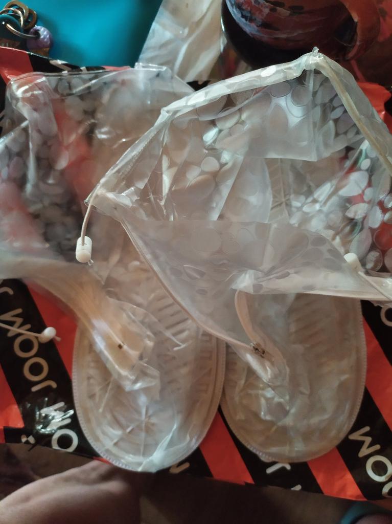 essas vieram perfeitas. As blusas são lindas, mas não deram. Ficaram absurdamente pequenas. Eu pedi XL e se quer entraram. Eu visto L. A saia e sapato de proteção pra chuva estão certos. Mas fiquei muito triste com as blusas.