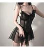 Sexy spodní prádlo Černá krajka Krátká noční košile Dámská Perspektiva Spodní prádlo Úzké šaty Kostým ZPG