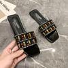 fashion Fashion Luxurious Rhinestone Women Silver Slippers Square Toe Beach Slides Summer Outdoor Casual Flat Slippers Female Large Size