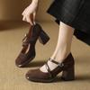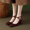 Spring Autumn Designer Shoes Fashion Square Toe Thick Heel Retro Matte Sexy Trendy Cross Buckle Women's Shoes Zapatos De Mujer
