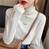 Early Autumn Dress Half Turtleneck Top Base Shirt Female Alphabet Embroidery Slim Student Solid Color Long Sleeve T-shirt Female Trend