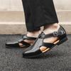 Genuine leather Sandals Italian Style Gladiatus Fashion Buckle Business Dress Sandals Handmade Leather shoes men sandals Size 46