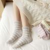 1 pár dámských podzimních a zimních pruhovaných spánkových ponožek z korálového fleecu, zateplené ponožky střední délky pro domácí nošení, jednoduché podlahové ponožky