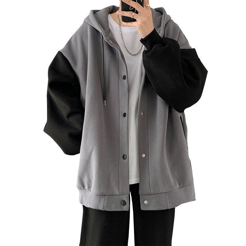 Hong Kong Style Men's Patchwork Hooded Cardigan Jacket - Trendy Autumn 2021 Korean Couple Outfit
