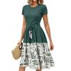 Dámská móda Ležérní pásek Krátký rukáv Kulatý výstřih Geometrický potisk Prošívaný Elegantní temperament Šaty