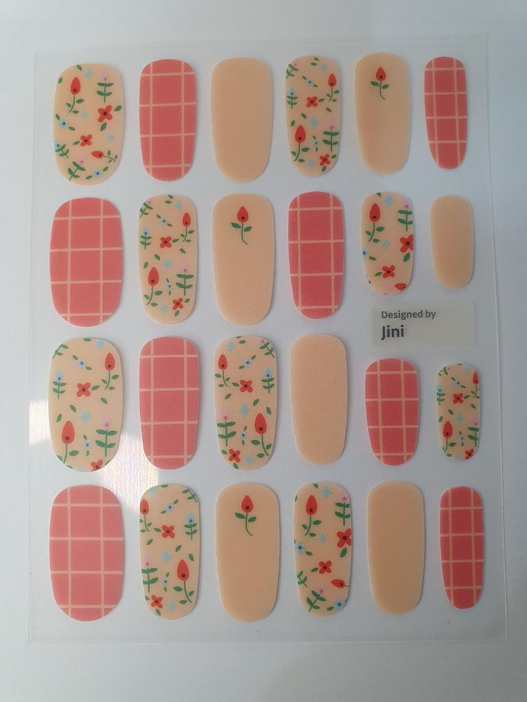 Floral Nail Stickers - 24pcs Self-Adhesive Strips, Quick 5-Min Manicure