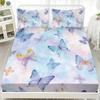 3D Butterfly Single Fitted Sheet Blue Printed Bed Sheets 30 cm Deep Fitted Sheets Soft Microfiber Bedding Set with Pillowcase