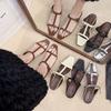 Fashion Low Shoes Woman 2025 Slipper Slides Hoof Heels Rome PU Fabric Rubber Low Shoes Ladies' Slippers Rome Hoof Heels Fabric PU Rubber