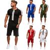 Summer 2pcs Mens Tracksuit Sport Suit T Shirt Tops Shorts Pants Set Outfit