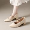 Square head thick heel single shoes women's spring and summer new one-word buckle strap burgundy Mary Jane shoes women