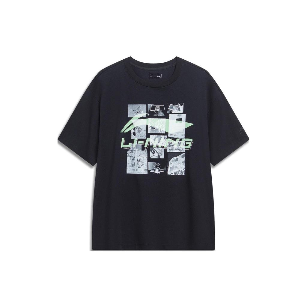 Li-Ning Retro Logo Print Crew Neck Short Sleeve Drop Shoulder T-Shirt Men Tops Black AHST725-1