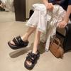 Lace lace one-word drag women's summer new thick-soled retro outer slippers heightened small cool slippers