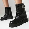 Fashion Designer Platform Flat Boots Women New Winter Fold Gothic Boot Buckle Zipper Fashion Brand Designer Ankle Boots Black White