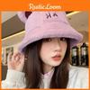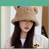 Ok Ear Bear Letter Embroidery Plush Fisherman Hat Bucket Cap Protection Sun