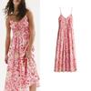 Summer New Product Women's Clothes Cotton V Neck Sleeveless Fluffy Skirt Crepe Woven Long Sling Dress 1289459