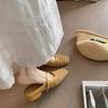 Sheepskin version! Inner heightening bag head half drag women's summer thick heel woven hollow Mary Jane cool slippers women's outer shoes