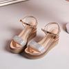 Rhinestone one-word buckle with wedge heel sandals women's 2025 summer new versatile beach shoes open-toed platform super high heels