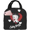LDU Betty Boop Cartoon Black Lunch Bag, Bento Box, Insulated/Cooler Bag with Zipper, Compact, Soft Cooler Bag, Tote/Eco Bag