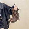 British style platform high-heeled Martin boots women's autumn and winter fashion versatile design belt buckle heightening fashion boots short boots