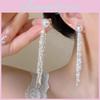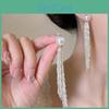 These long, geometric-style earrings feature French pearls and delicate tassels, crafted from durable alloy with a sleek electroplated finish, they add a subtle vintage and fresh aesthetic. Ideal for daily wear or special occasions, these earrings support easy maintenance with gentle wiping.