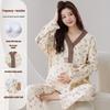 Experience ultimate comfort and functionality with these plus size maternity pajamas, thoughtfully designed for autumn and winter seasons. This women's postpartum nursing and home wear set features built-in chest pads, providing convenience and support for nursing mothers. Made from soft cotton material, these pajamas ensure a cozy fit, offering warmth and breathability. Ideal for lounging at home or for restful nights, this set caters to the unique needs of postpartum and nursing women, combining practicality with stylish design.