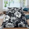 3pcs Pink Grey Fitted Sheet Set Fresh Style Rose Flora Print 100% Polyester Soft Bedding Set for Home Decor with 2 Pillowcases