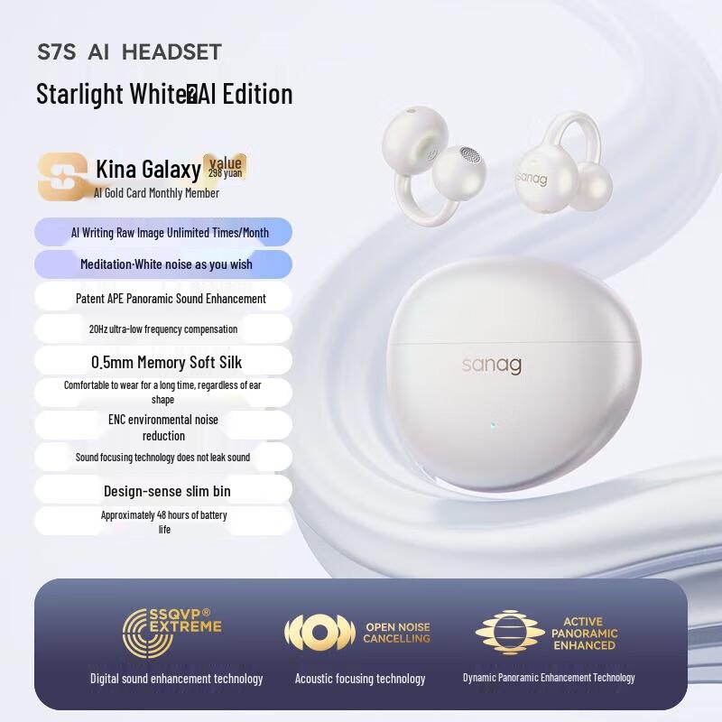 Sena S7S AI Open-Ear Noise-Cancelling Bluetooth Ear-Clip Headset
