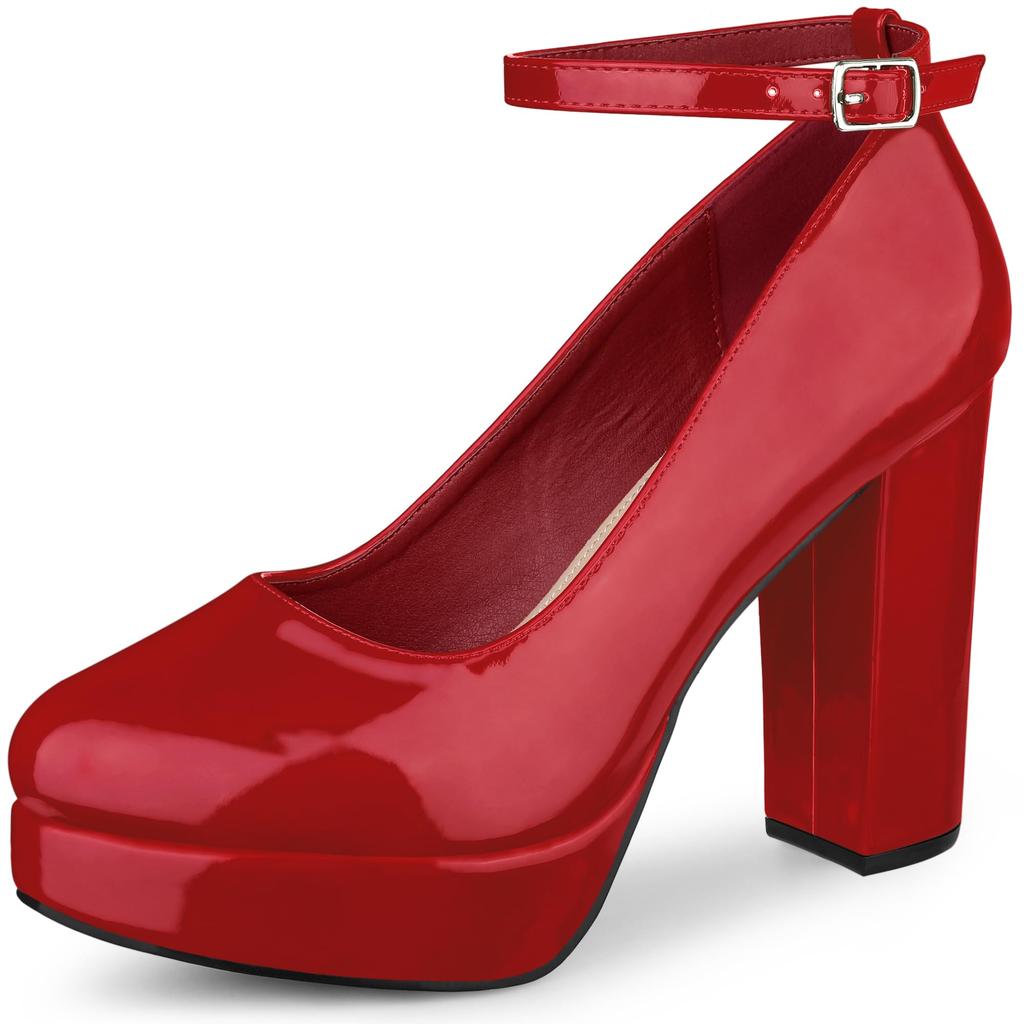 Allegra K Women's Platform Pumps with Ankle Straps, Chunky High Heels, Red, Size 26.0cm