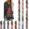 Women's Christmas Print V Neck Loose Long Sleeved T-shirt Straight Sleeves Tops For Women