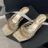 2024 Summer Hot Selling Women's High Heels and Slippers Fashionable and Elegant Square Toe Outdoor Versatile Silver Women Shoes
