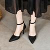 Fashion 2024 New Spring/summer Black High Heels Women Stiletto Heels Sexy Pointy Patent Leather Strap Sandals Not Tired Sandals Women