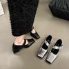 Σανδάλια Baotou Γυναικεία 2024 Νέα Ρετρό Ασημί Ψηλά Τακούνια με Αγκράφα σε Α Γραμμή Τετράγωνη Μύτη Χοντρά Τακούνια