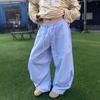 Women's Summer Thin Blue Vertical Stripe Wide-Leg Lounge Pants - Loose Drawstring Casual Cooling Trousers for Walking