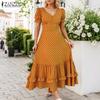 ZANZEA Women Summer Stand Collar Short Sleeve Casual Print Dress