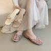 Fashion Female Sandal 2025 Women's Bow Shoes Clear Heels Girls New Beige Outside Low Comfort Summer Fashion Scandals Butterfly-knot Casu