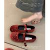 Retro red rhinestone round head shallow mouth single shoes women's 2025 French temperament ballet flat Mary Jane shoes half drag