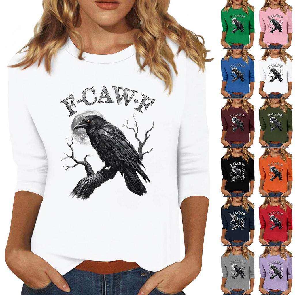 Women's Fashion Casual Three-Quarter Sleeve Printed Neck T-Shirt Top