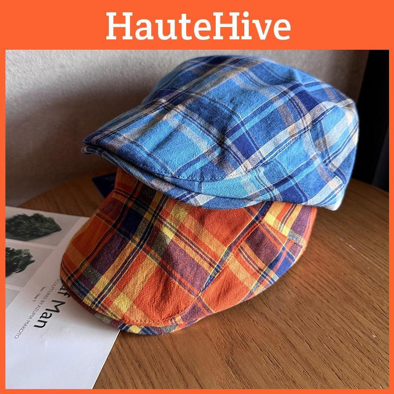 Stylish Plaid Beret Cap With Cotton Fabric For Women Casual Outings
