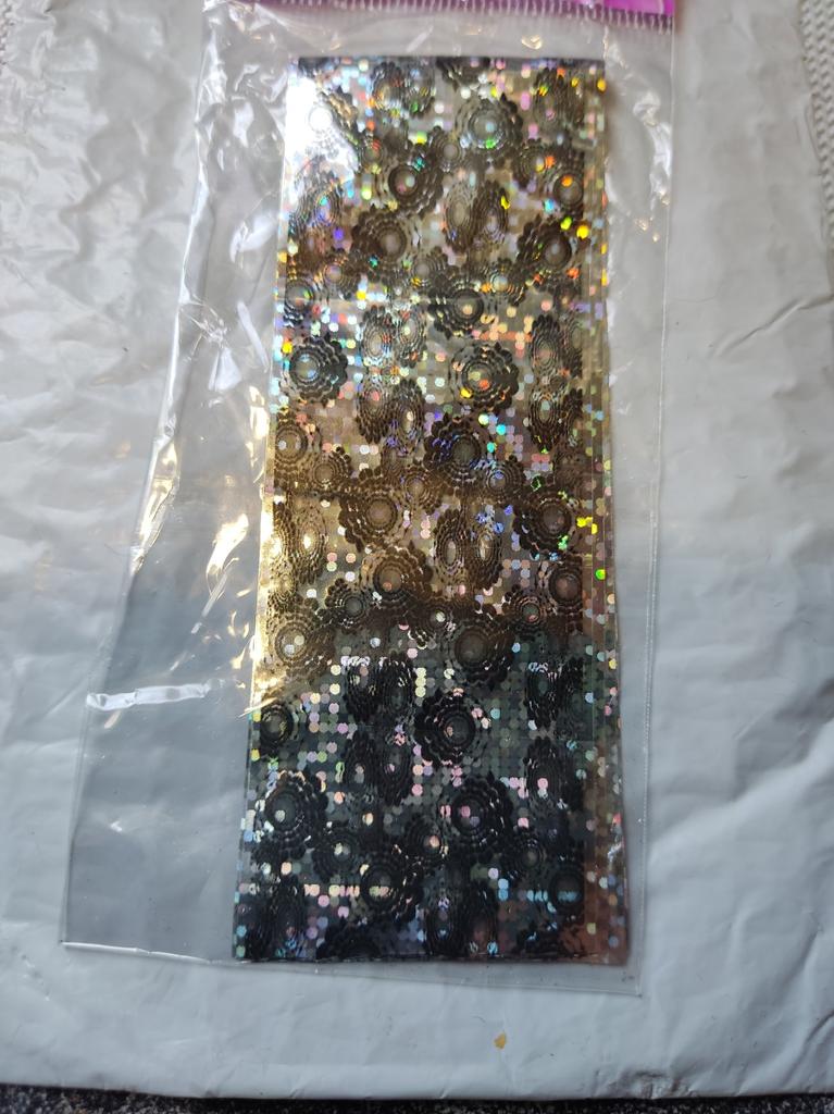 4. Press foil shiny side up, onto the nail and rub over using your finger, or for a better more precise application, use a rubber hoof stick. (for best results cut a piece of foil of the length just big enough for the nail, its easier to control and apply flat). Different colors of foils can mixed on the nails.