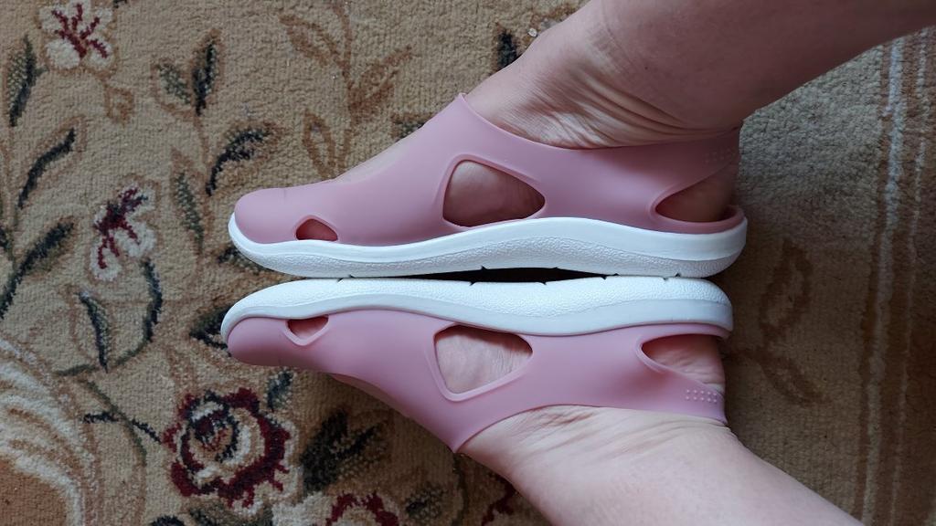 The size corresponds to what the seller indicated, this is a plus. Comfortable and soft, quite a good alternative to crocs. They look good, but keep in mind that these are not crocs - the quality corresponds to the price... there are noticeable irregularities and there is an unpleasant smell. I will add a review during the season