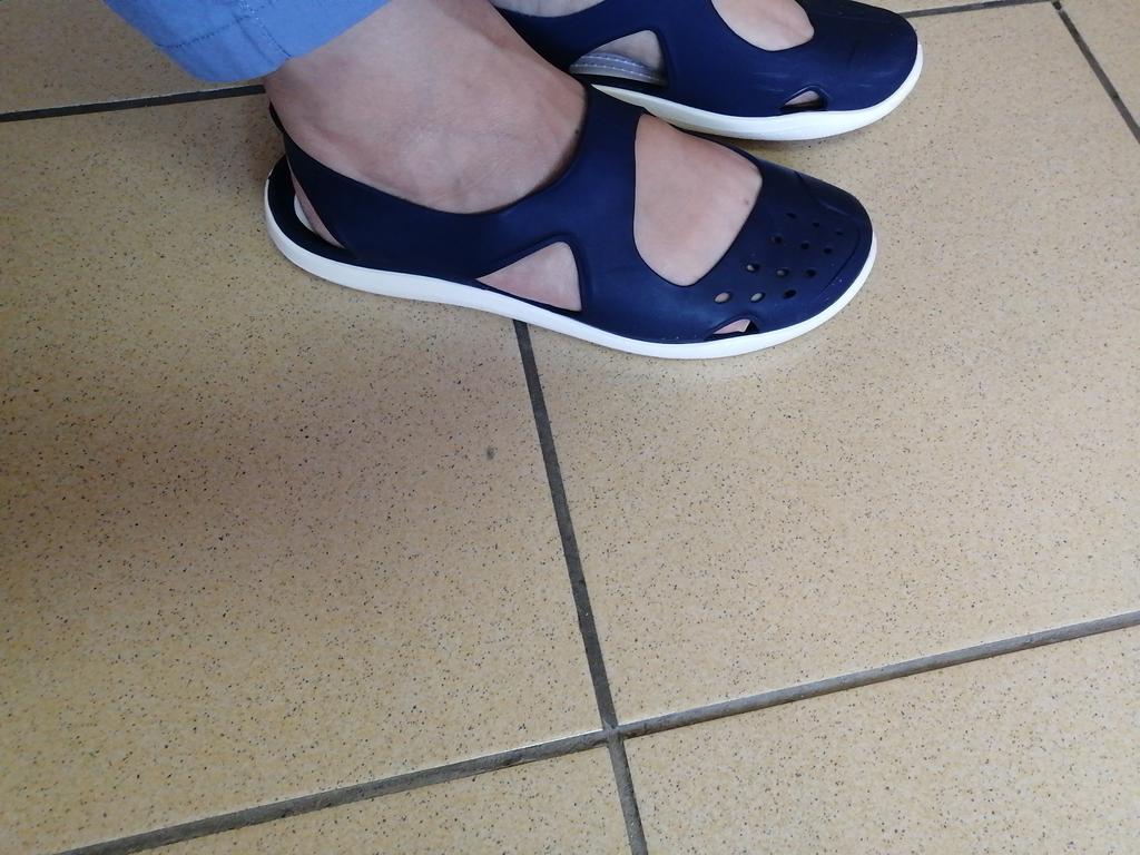 I took it according to the size grid and made a margin of 0.5 cm. I did not lose. They were not back to back, but they did not fall off. Withstood the daily promenade to the sea and back 1.5 km twice a day and the sea itself. They don't rub, they don't fall off. They are doing great. On a pebbly beach - that's it. On the sandy beach, I was uncomfortable: the sand clogged everything. So for pebble beaches I highly recommend