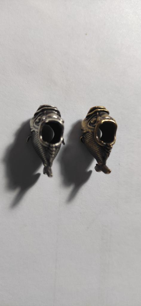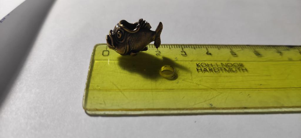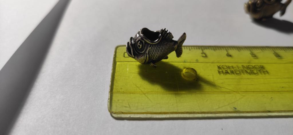 The fish arrived with a missing left fin. However, it does not seem that it broke off, most likely it is a defect when pouring the metal into the mold.