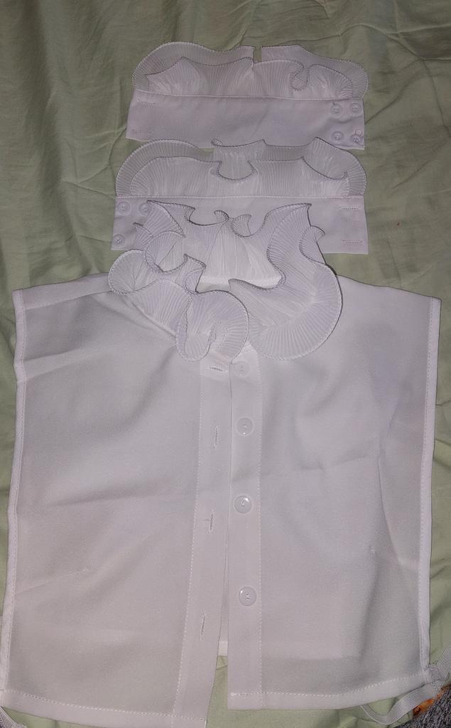 Women 2Pcs Layered Ruffled Stand False Collar with Fake Sleeves Cuffs Wristband Set Button Down Detachable Half Shirt