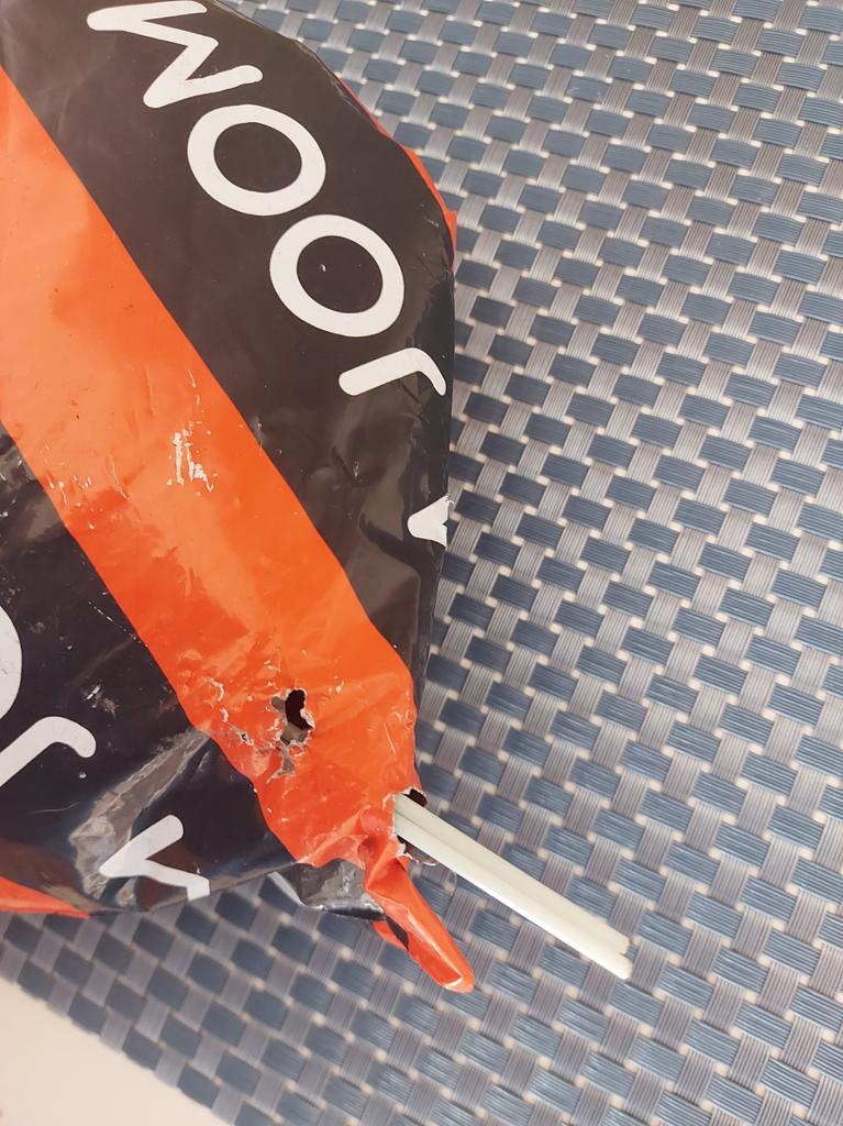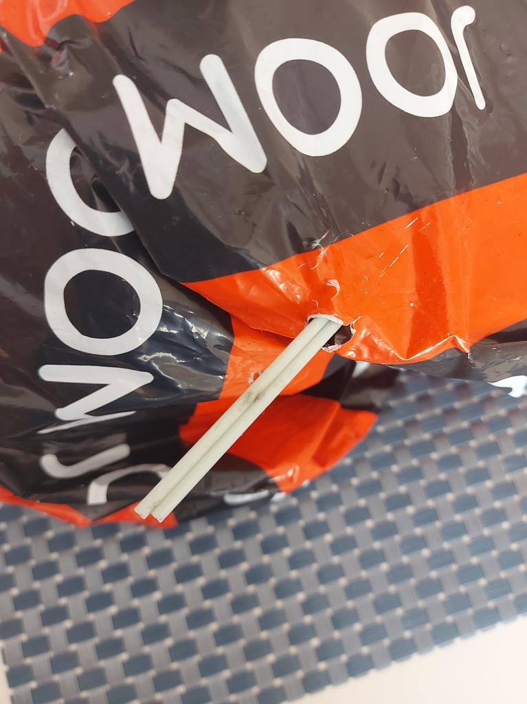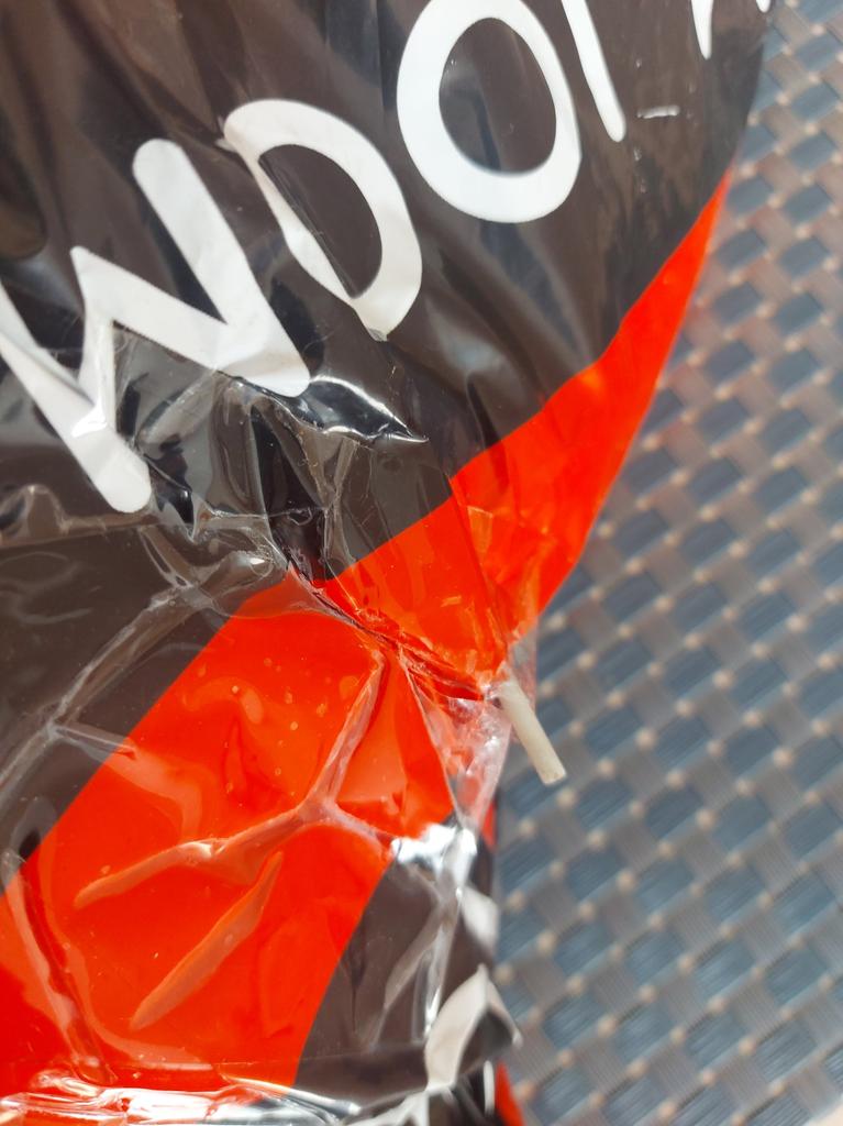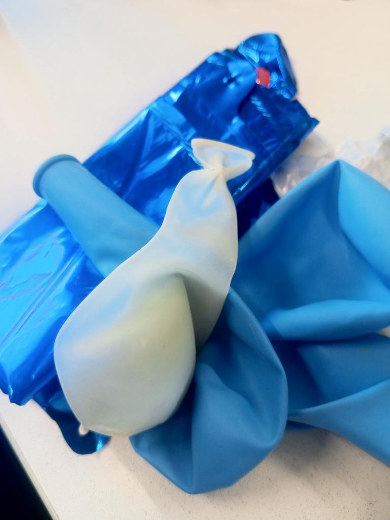 The package is stapled together with the broken result balloons