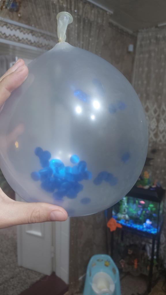 The order took 3 weeks. I just received it the day before my birthday, the holiday is savedβΊοΈ everything corresponds to the quantity. The only thing is white (transparent) balls with pink sparkles inside. I took my son for his birthday, if he were a little older, I might have been upset about the pink color. I consider it a "trick". The smell of raisins is present, as is characteristic of such balls. They haven't inflated it yet, but the quality seems to be fine. Thanks to the seller and JOOM π π
