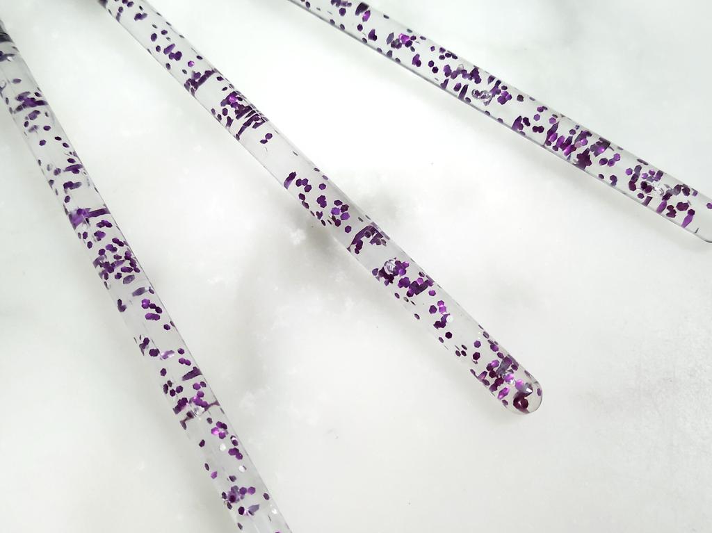 Acrylic brushes for manicure 💖 It is a set of 3 brushes. The sizes are the same. The fibers are soft and synthetic. Handles are shiny plastic with purple glitter. They are for manicure but you can also use them for crafts. The shipment has been very fast and very well packed.