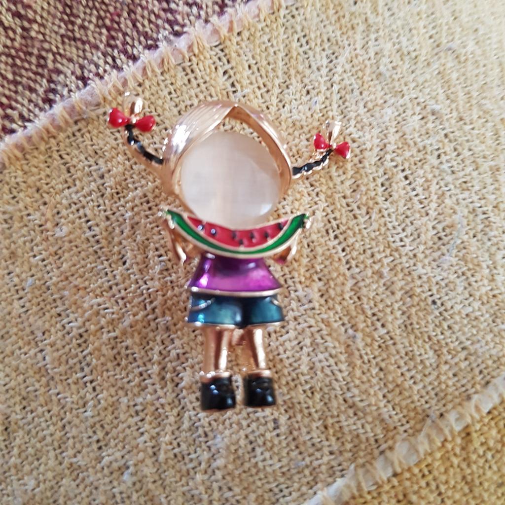 Blucome New Arrival Cute Girl Eating Melon Brooch Little Girl with Pink Hat Brooch Pin for Girls Women