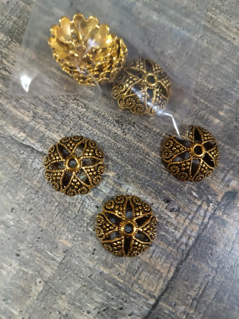 Interesting bead caps, the color is more like bronze. Diameter for very large beads 14-16mm