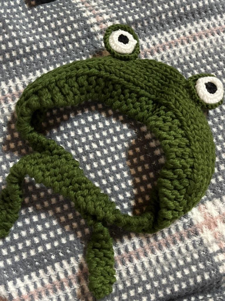 very soft material and warm. Quality for such a price, very cute hat🐸